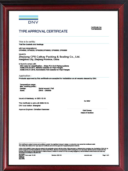挪威船级社DNV型式认可证书