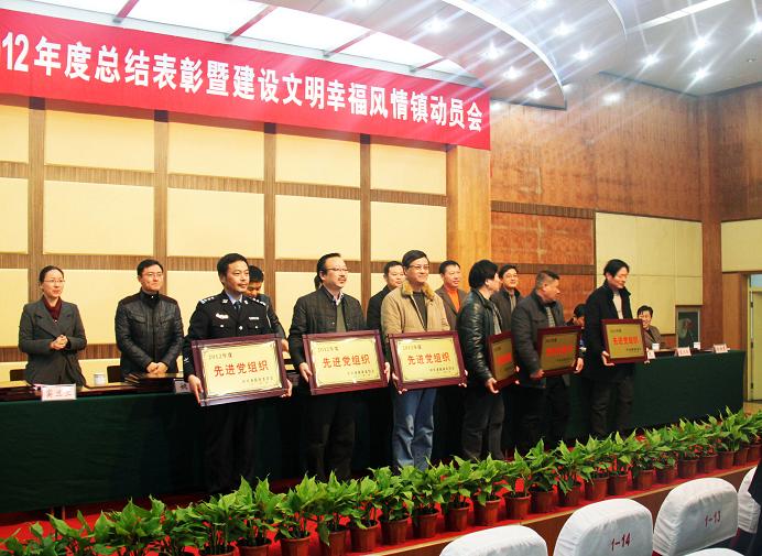 二月十八日,浦阳镇召开2012年度先进表彰大会,我公司董事长兼总经理孙锦龙,常务副总经理吴益民,生产副总蒋忠灿和总经理助理丁关根参加了大会。因公司在2012年度中的优异成绩,孙总上台接受了“创业功臣”和“五星级强企业”的奖牌;吴总上台接受了“先进党组织”的奖牌;蒋总上台接受了“纳税十强企业”的奖牌。