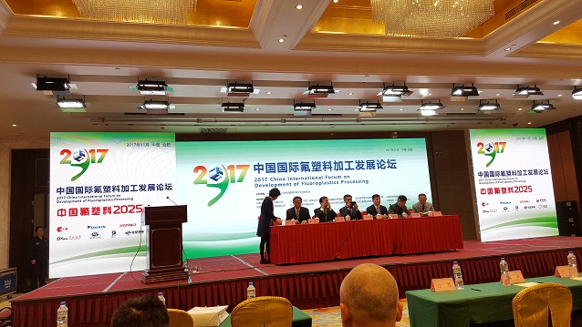 2017中国氟塑料加工发展论坛11月7-9号在安徽合肥召开。来自中国、美国、意大利、日本、韩国等国家的300多位业内企业家和专家出席。我司副董事长兼总工程师吴益民、技术副总王仕江出席论坛。